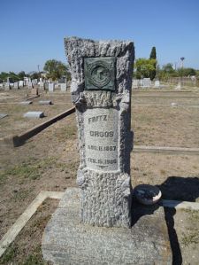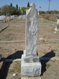 Our first stop was the Old St. John’s Lutheran Cemetery sometimes called the Old German Lutheran Cemetery. It is located East of downtown San Antonio near several other cemeteries.Gustav Bergmann, Joseph and Theresia Bergmann’s oldest son, was buried there according to the St. John’s Lutheran archive records. Of course, there always is a chance that there isn’t a tombstone, but I was not disappointed. A beautiful gray granite stone with curbing around the plot.