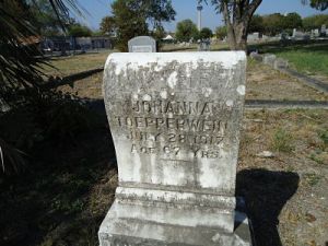Next we went to City Cemetery #1 to locate Johanna Bergmann Toepperwein’s tombstone. Johanna is the youngest daughter of Joseph and Theresia Bergmann.