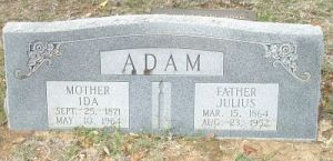 Boerne Cemetery (Boerne, Kendall County, Texas). Julius and Ida Adam marker; personally read 2011.