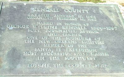 (Boerne, Kendall County, Texas). George Wilkins Kendall marker; personally read 2011.