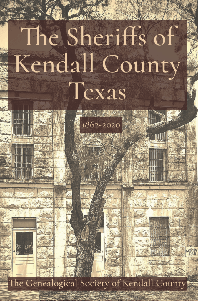 New Book!! Great Read!! This exciting and informative book about the twenty-three sheriffs of Kendall County, Texas, can be purchased at the Family History Place located at 114 E. Blanco in Boerne. The hours of operation are Monday through Friday from 1:00 PM to 4:00 PM. You can also order a copy online at gskctx.org. The cost of the book is $20.00, tax included.
