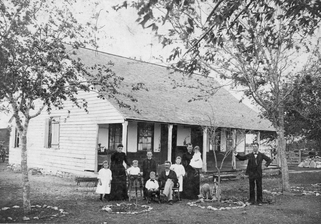 Here is another photograph that was with the Wessely and Bauer photographs. On the back it is labeled Wessely Place. I thought this was Carl and Louise Wessely’s family with either his parents or her parents, but the dates do not line up. Can anyone identify the people or recognize the house? I love the lamb grazing next to the older woman. I bet it is a bottle baby. We have had a few of those. I also like the washing machine on the porch and the children’s toys scattered around the yard.