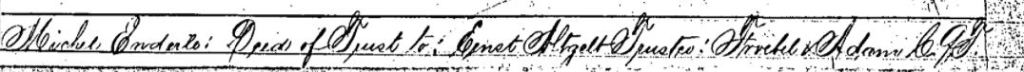 Since I first started gathering information about Conrad Adam, my great-great-grandfather, I have continually looked in books and later on the Internet for him. I never expect to find him and am always surprised when I do. Today was not any different. I typed his name into the Bexar County Deed search box. Lo and behold, there he was in 1875, agreeing to be a trustee with H. G. Froebel on a Deed of Trust for Michel Enderle. The witnesses were E. C. Grothaus and Ch. Dienger. The definition for a Deed of Trust is “a type of security for a loan. It names a third party called the trustee to hold the legal title until you pay it off.” So here, we find Conrad doing a good deed. Of course, this leads to another question. Who is Michel Enderle?