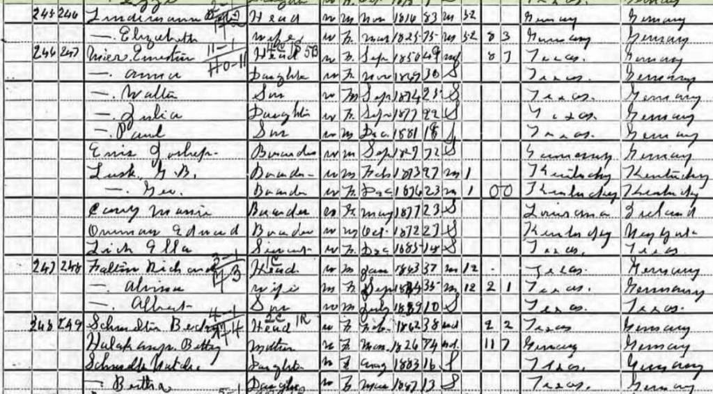 So,  how was the census taken?  The census taker would go house by house and ask questions from the census about who lived there.  Depending on who the census taker talked to depended on the answers they received.  Sometimes they asked the father working in the fields, whoever answered the door,  or a neighbor because no one was home, and they did not want to return the next day.  The census taker did not record who gave the information.  That is not all. The census taker had to handwrite three copies of the census going line by line and guess what happens when a person must copy something three times. Mistakes, Mistakes, Mistakes.  We all make them.