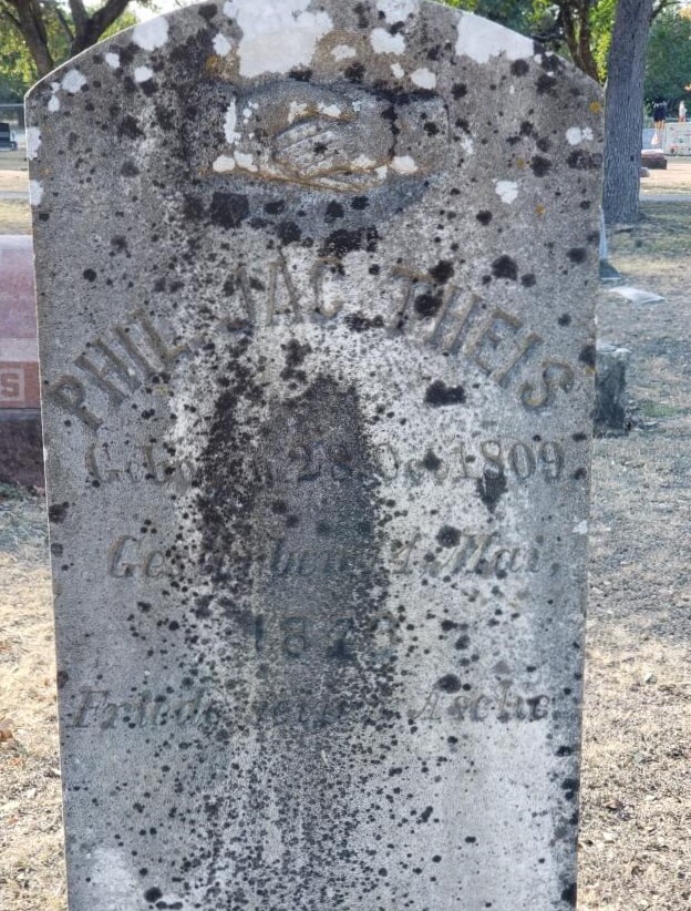 Boerne Cemetery (Boerne, Kendall County, Texas). Phil. Jac. Theis marker; personally read November 2020.